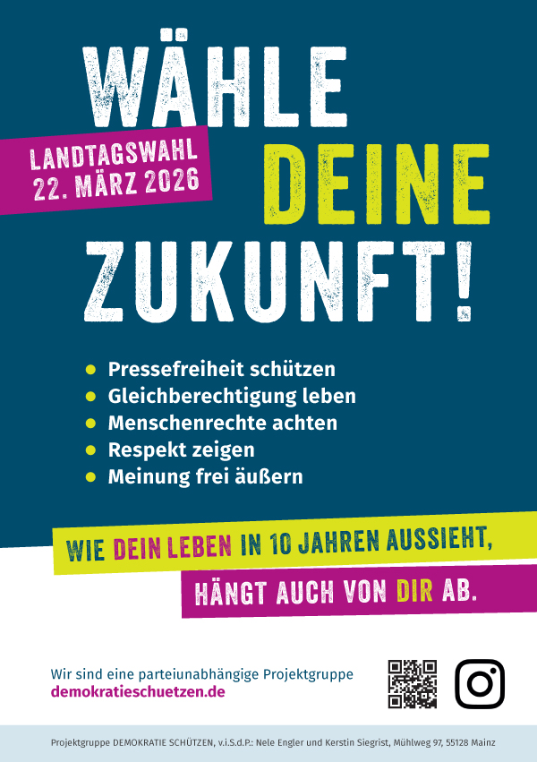 Das ist unser Flyer für die Landtagswahl 2026 Rheinland-Pfalz Wir haben auch bei der Europawahl 2024 und bei der Bundestagswahl 2025 Flyer verteilt. Hier findest du unsere alten Flyer. Europawahl 2024 Bundestagswahl 2025