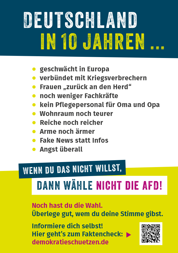 Wir haben auch bei der Europawahl 2024 und bei der Bundestagswahl 2025 Flyer verteilt. Hier findest du unsere alten Flyer.